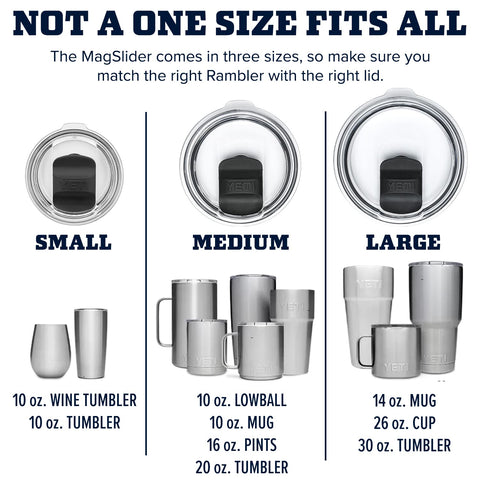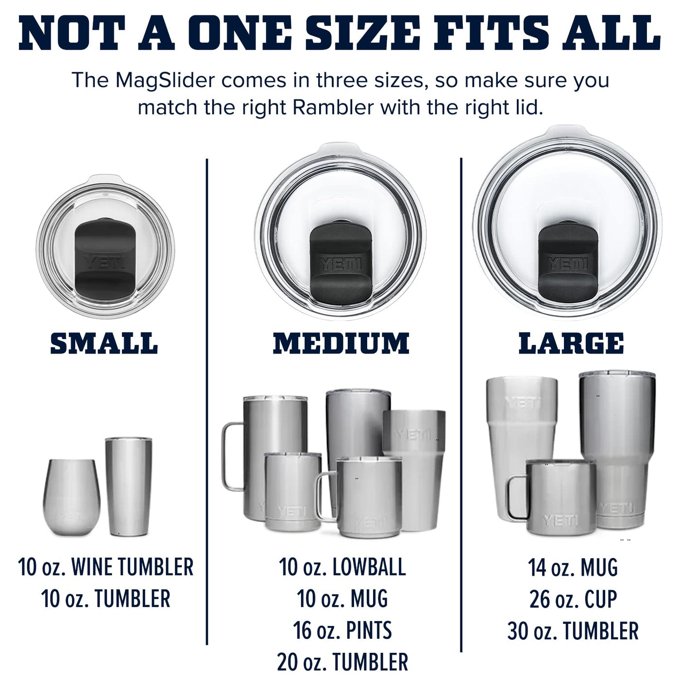 - This Lid Fits the YETI 10 oz Lowball, 10 oz Mug and the 20 oz Tumbler. Unlike other slider lids, ours harnesses the power of magnets for smooth opening and closing
