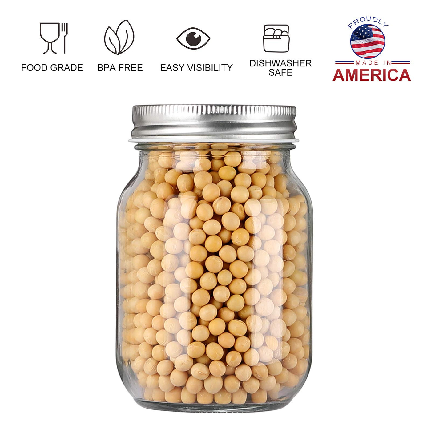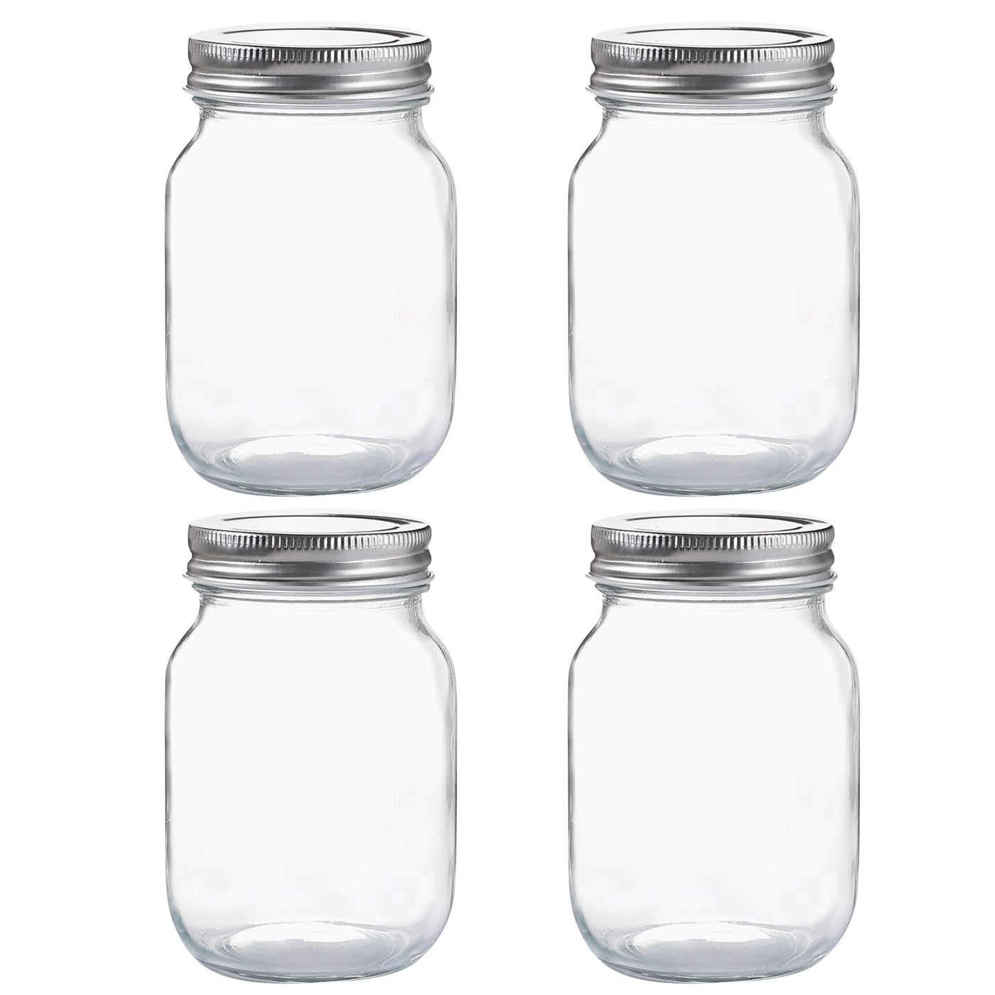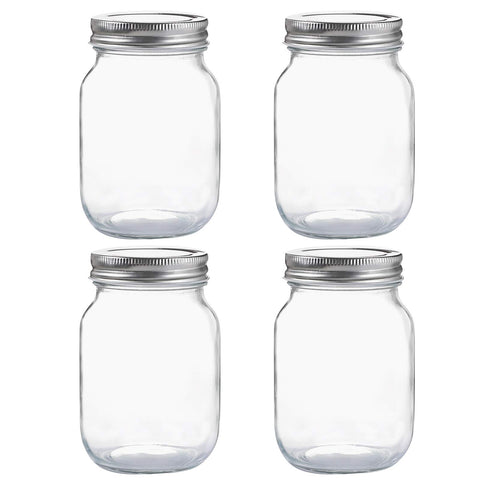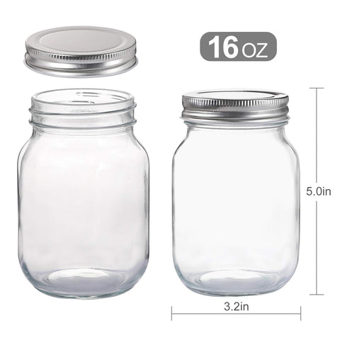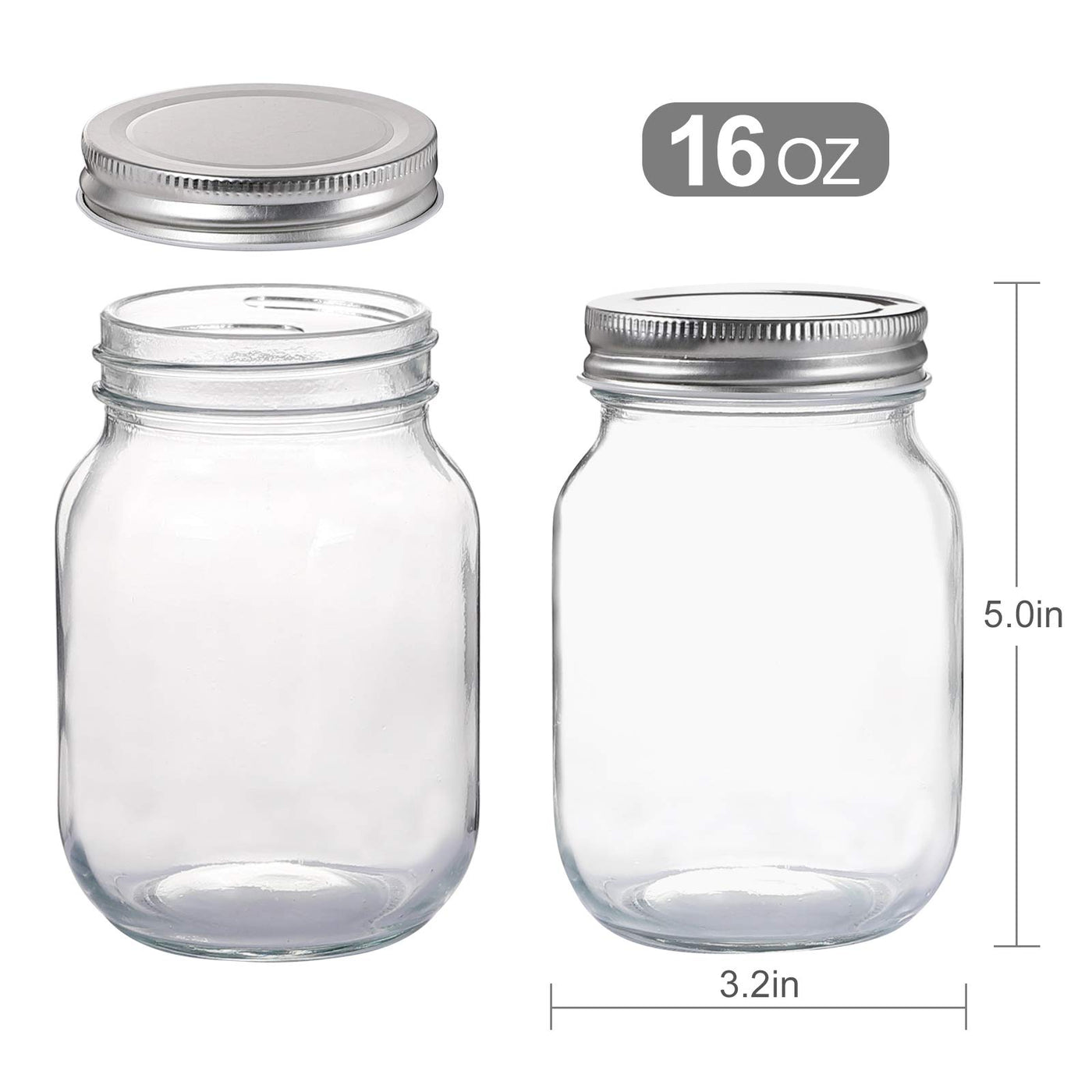 - USE & CARE: Each pack includes 4 pieces crystal-clear glass mason jars with silver lids, 16oz. Made of glass and BPA-free. Dishwasher safe.