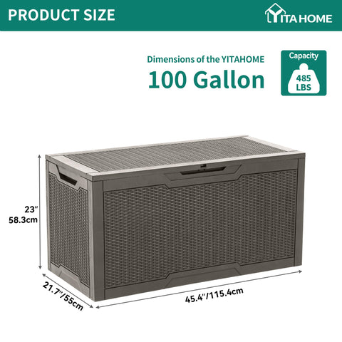 - Generous Capacity: Our resin outdoor storage offers a spacious 100-gallon interior, measuring 44.9"L x 21.9"W x21.6"H inside and 45.3"L x 21.7"W x23"H outside, ideal for storing both indoor and outdoor essentials