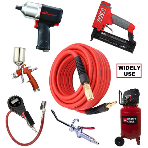 - EXCELLENT MATERIAL: This air hose is blended rubber and PVC air hose is heavy duty, lightweight, flexibility,abrasion resistance and all weather use.