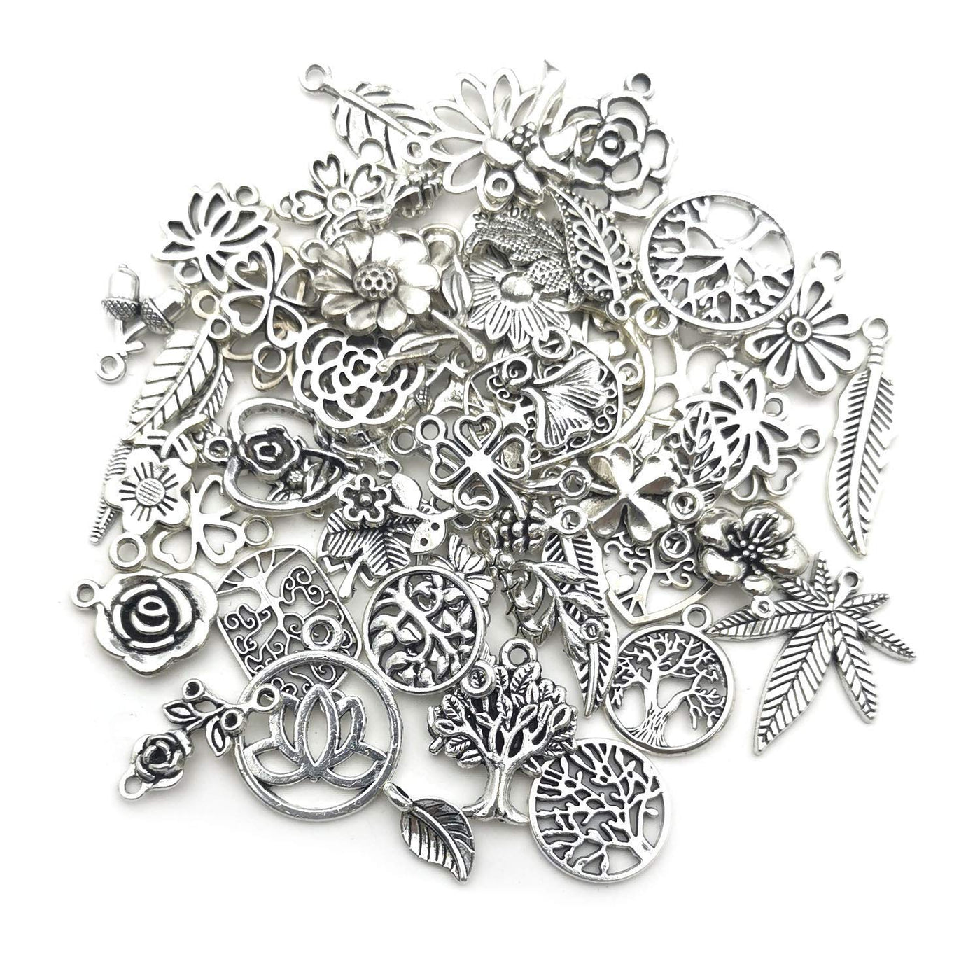 - You will receive 100-104 pieces mixed tree flower charms. Rich design: 52 designs, 2 pieces of each design. include leaf tree of life flower.