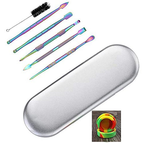 Yullmu 5-Piece Wax Carving Tool Rainbow Stainless Steel Tools with 5ml Silicone Container and 1 Cleaning Brush Sale