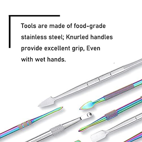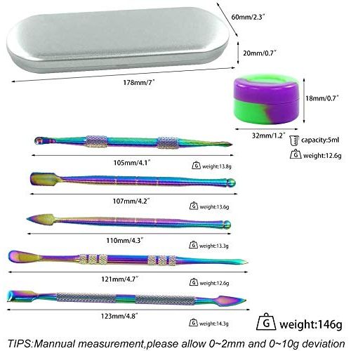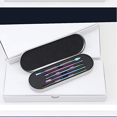 Yullmu 5-Piece Wax Carving Tool Rainbow Stainless Steel Tools with 5ml Silicone Container and 1 Cleaning Brush