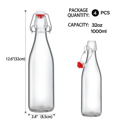 ZEBEIYU 32oz Beer Bottle,Swing Top Glass Kombucha Bottles with Stoppers for Brewing, Beverages, Smoothies, Kefir, Beer, Soda, Juicing, Kombucha, Oil, Water, Milk, Vinegar(4 Pack)