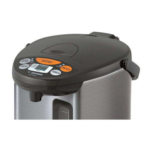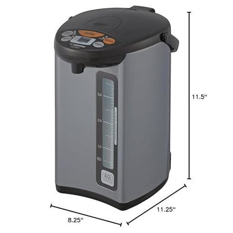 Details: Zojirushi Micom water boiler and warmer has a micro computerized temperature control and a one-touch electric dispensing system. It has four keep warm temperature settings: 160, 175, 195, 208 degrees F. This unit displays actual water temperature at all times. It is also has an energy saving timer function (6 - 10 hours) and easy-to-hear sound indicator to alert completion of boiling process or low water level. Quick temp mode heats the water directly to the selected keep warm temperature without reaching a boil. The water will reach the selected keep warm temperature quicker than regular mode. Other benefits include reduced steam and reduced energy use. This mode should be used when DE chlorination is not necessary, such as when using bottled or purified water. To activate, press the reboil/quick temp button; the boil light blinks. The dechlorinate mode reduces chlorine and musty odors from tap water by extending the boiling time.