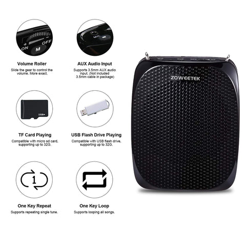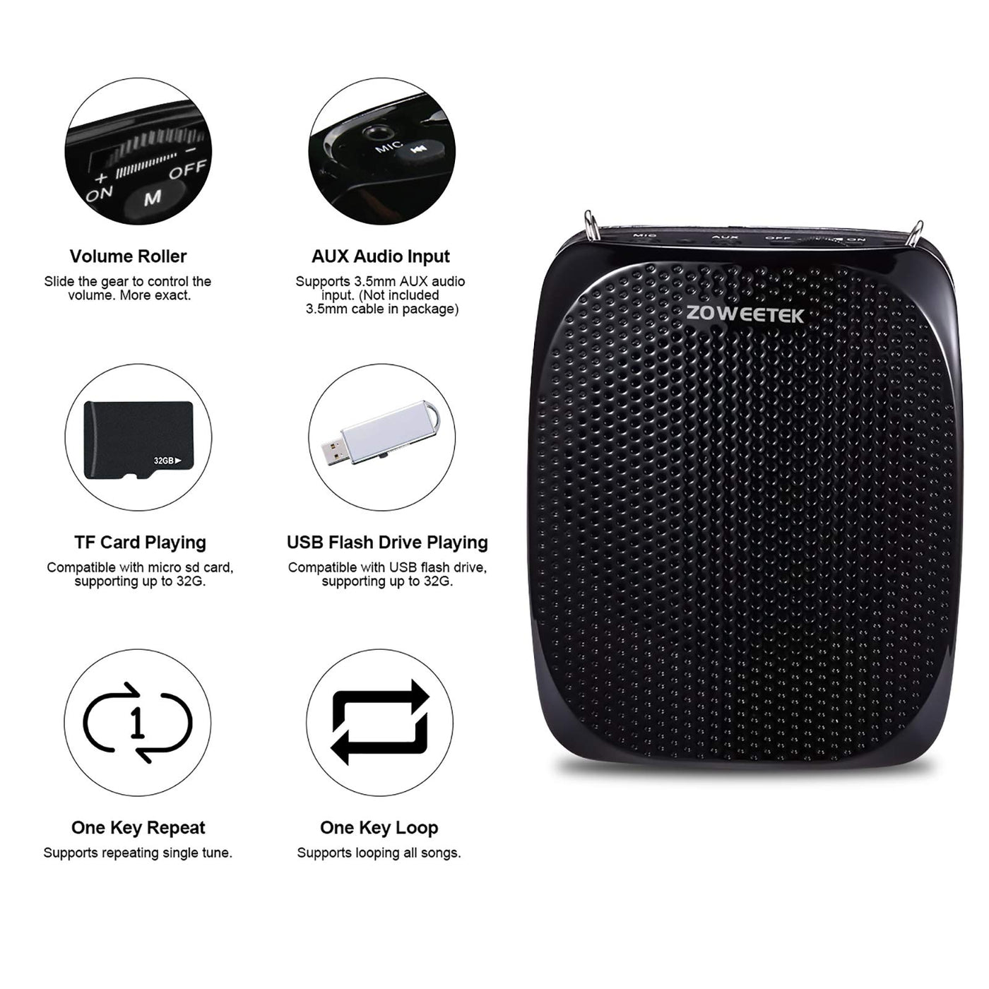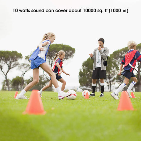 - ZOWEETEK Voice Amplifier Amplifys your voice and saves your throat. The sound is clear, crisp, no noise and no distortion. The max 10 watts sound can cover about 10000 sq. ft (1000 ㎡), loud enough to cover a big room