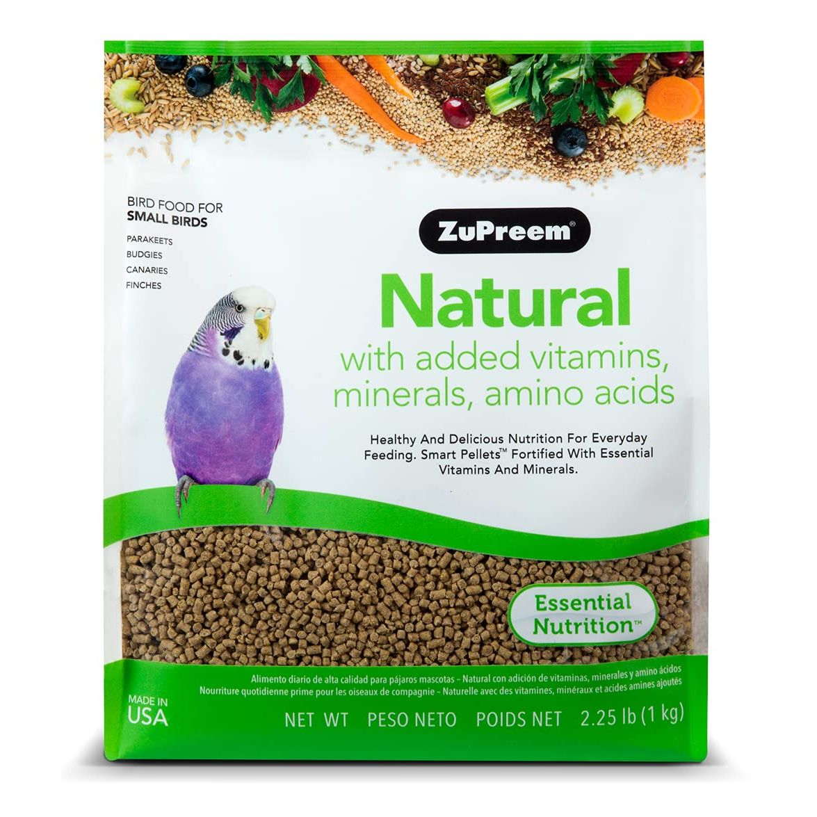 Details: ZuPreem Natural Bird Food delivers a nutritionally complete daily diet made with high-quality whole grains and naturally sourced ingredients for small birds such as parakeets, budgies, parrotlets, & doves. This balanced formula includes essential vitamins, minerals, and amino acids to support immune function, strong feathers, and overall vitality. The uniform pellet shape ensures your bird receives consistent nutrition with every bite, helping prevent selective eating and nutrient gaps common in seed-based diets. Made without artificial colors, flavors, and preservatives, this natural food is ideal for birds with sensitivities and those transitioning to a healthier daily diet. The firm texture promotes natural chewing and beak conditioning while supporting digestive health. Designed by avian experts and recommended by veterinarians, ZuPreem Natural Bird Food is an excellent choice for pet parents seeking a wholesome, reliable food that supports long-term health and enhances daily mealtime with simplicity and purpose.