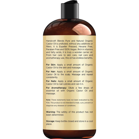 Handcraft Blends Organic Castor Oil - 16 Fl Oz - 100% Pure and Natural - Premium Grade Carrier Oil for Hair Growth, Eyelashes and Eyebrows - Hair and Body - Expeller-Pressed & Hexane-Free Sale