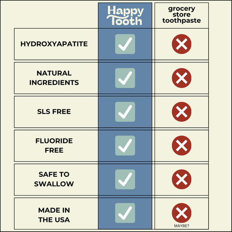 Happy Tooth Hydroxyapatite Toothpaste, Fluoride Free, Natural Whitening for Kids, Toddlers and Adults, SLS Free, Enamel Safe, Dentist Formulated with Clean Ingredients, Vanilla Frosting Flavor, 3.4oz