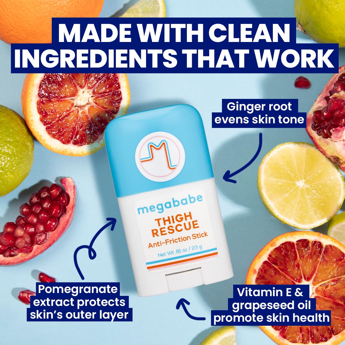 - ONE SOLD EVERY 30 SECONDS* – The go-to anti-chafe stick, trusted by customers worldwide for smooth, irritation-free skin. Use anywhere chafe is an issue! Ideal for bra straps that rub, waistbands that dig or shoes that blister (ie, anywhere skin is sensitive to rubbing!) *Based on 2024 Megababe sales data of Thigh Rescue & Thigh Rescue Mini