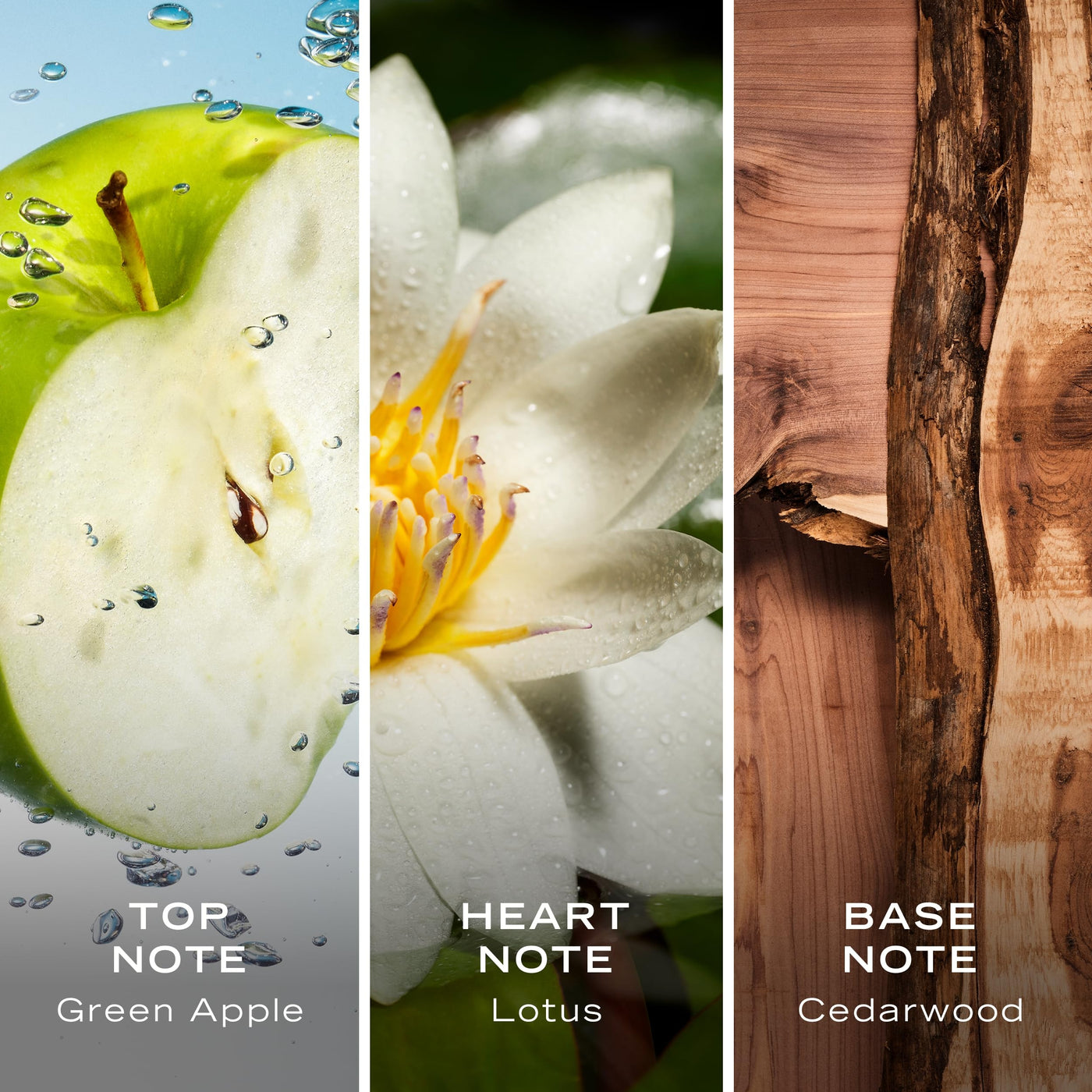 Details: A blend of apple and water lotus laid on a woody base, combined of cedarwood, musk, and amber.