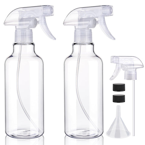 - SATISFIED SERVICES: Our 2pcs 16.9oz/500ml Plastic Spray Bottle set includes an extra spray nozzle, a funnel and 2 caps ,if you have any problem with our bottles, pls let us know, we will do our best to meet your satisfaction.