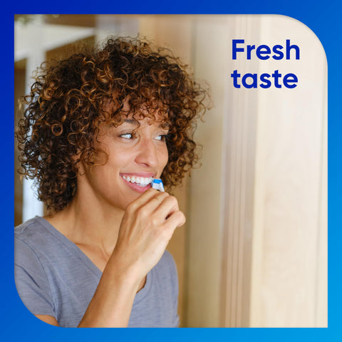 - Toothpaste for sensitive teeth that freshens your breath and contains fluoride to fight cavities