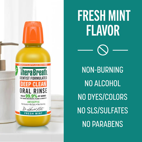 TheraBreath Deep Clean Mouthwash, Antiseptic Benefits, Fresh Mint Flavor, Dentist Formulated, Alcohol Free, 16 fl oz (Pack of 2) Sale