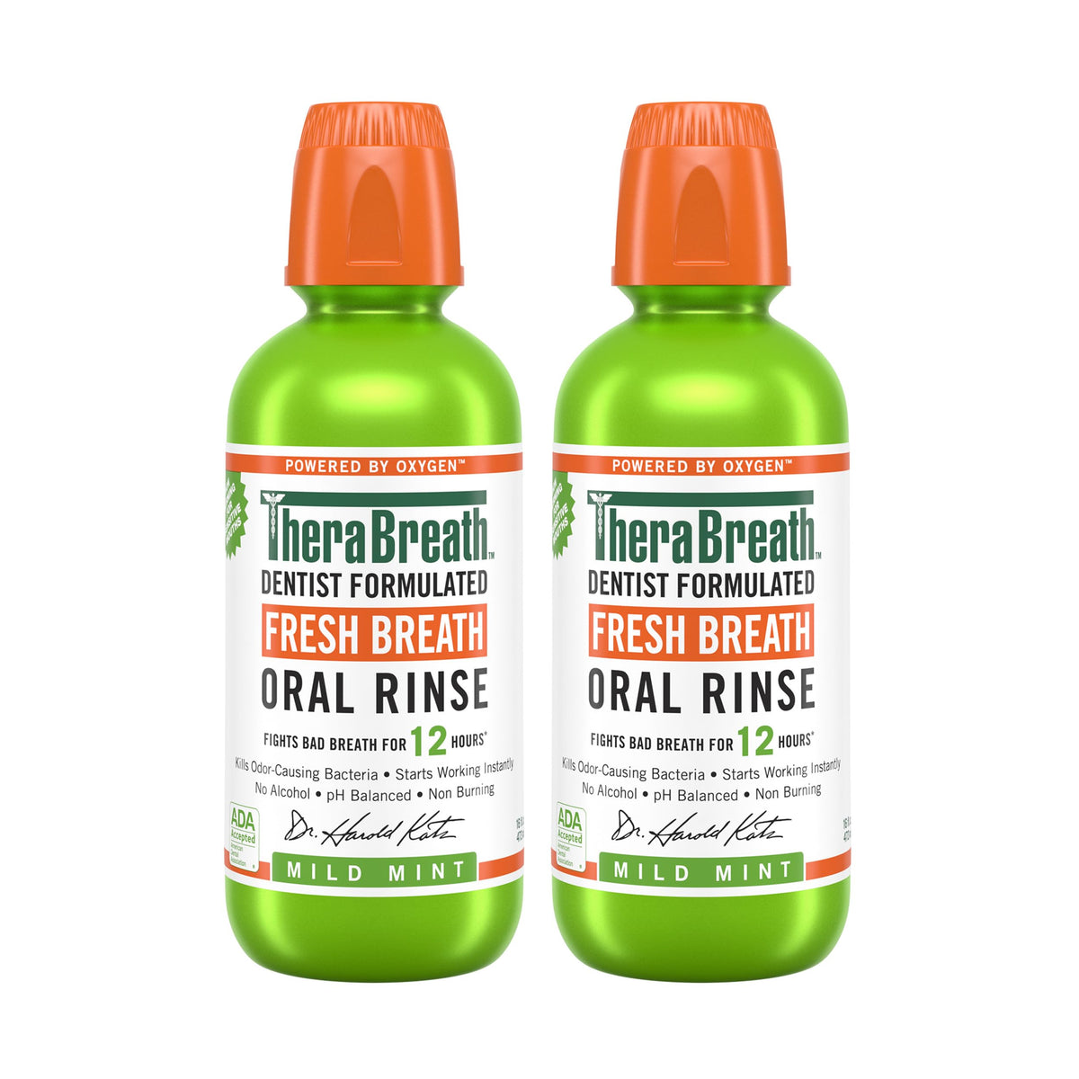TheraBreath Fresh Breath Mouthwash, Mild Mint Flavor, Alcohol-Free, 16 Fl Oz (2-Pack)