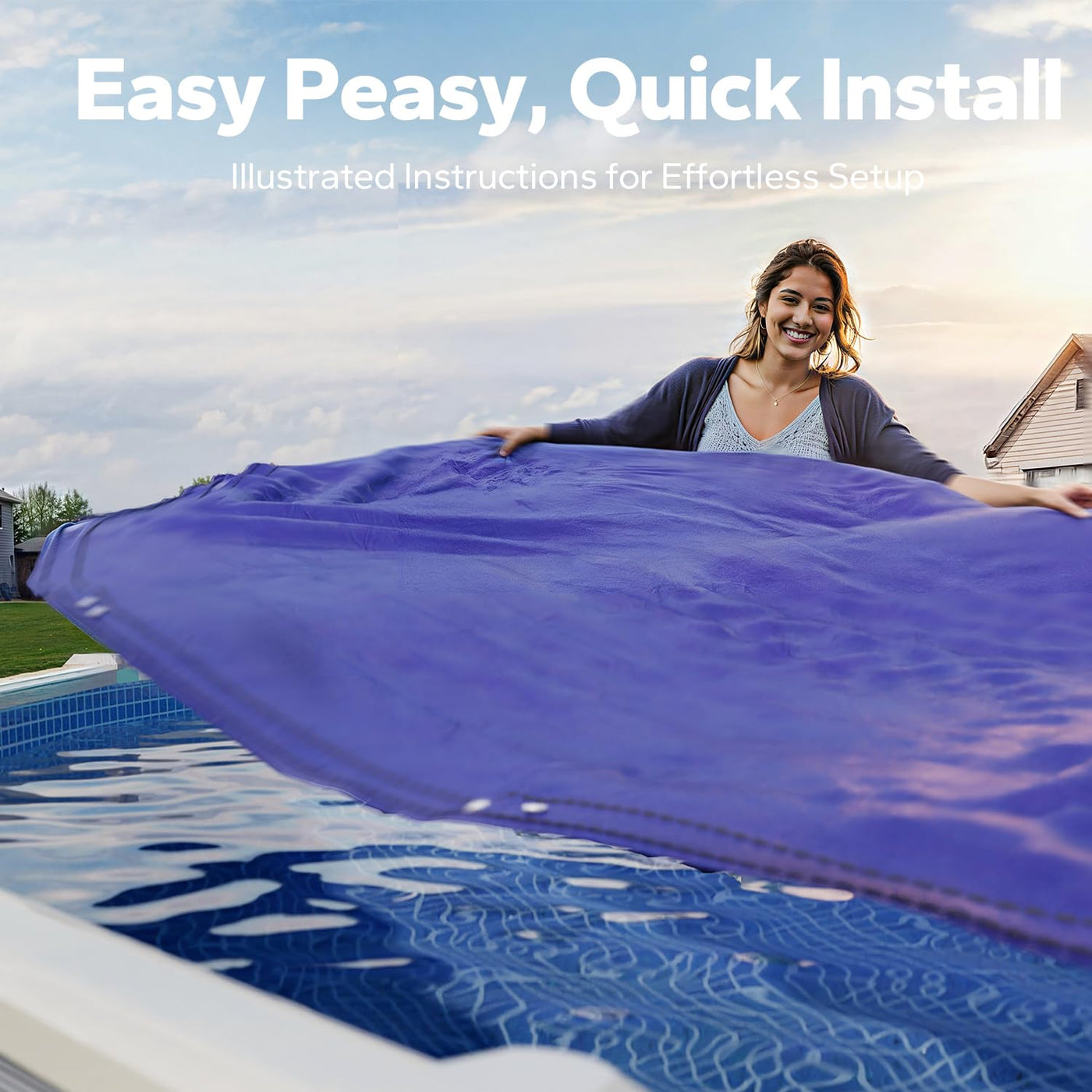 - 【UV Shield, Water Saver】Engineered with UV-resistant coating and waterproof sealing, this pool cover minimizes water evaporation by up to 90%—helping you maintain consistent water levels while preventing sun damage to your pool. Spend less time refilling and more time enjoying a worry-free winter.