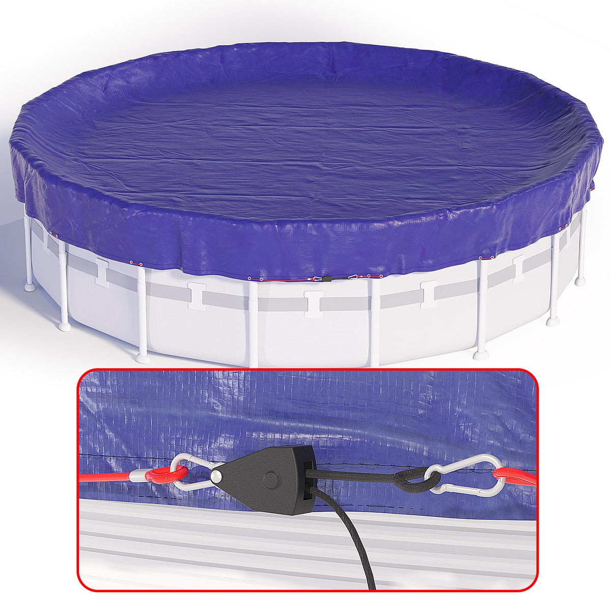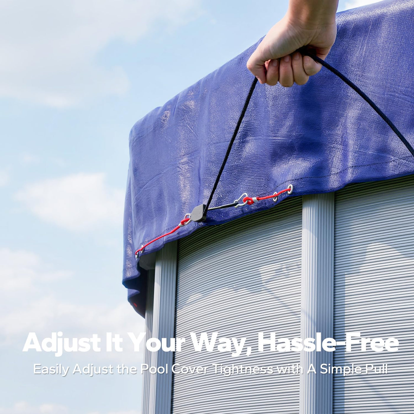 - 【Pull to Fit, No Sweat】The innovative pulley design allows you to easily adjust the round pool cover with a simple pull, making installation fast, easy, and hassle-free.