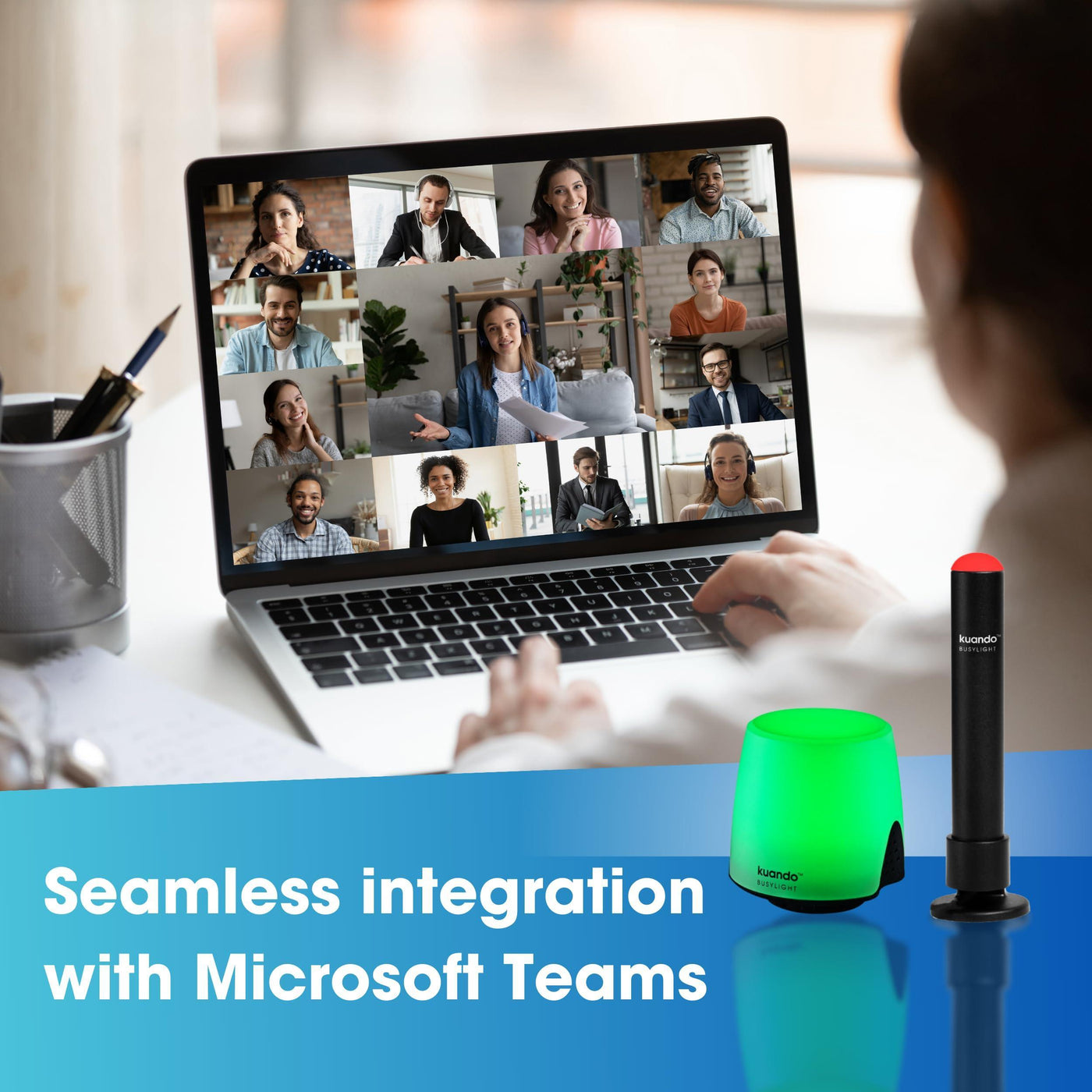 - Use the Free kuandoHUB software to control multiple UC Platforms (e.g. Teams, Zoom), manually control the light, plus more capabilities including integration with Microsoft Outlook so it automatically shows when you are in a meeting.