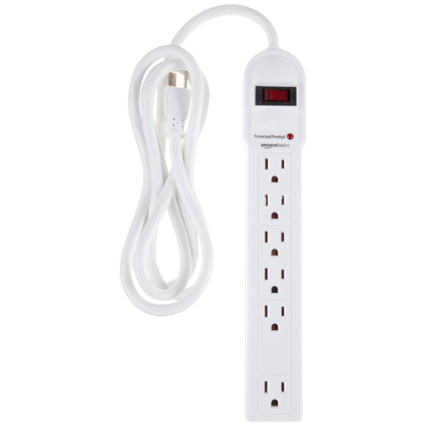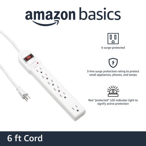 Amazon Basics Surge Protector Power Strip, 6-Outlet, 790 Joules, LED Indicator, 6ft Extension Cord, White