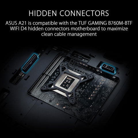 - Hidden Connectors: ASUS A21 is compatible with BTF hidden connector motherboards to maximize clean cable management
