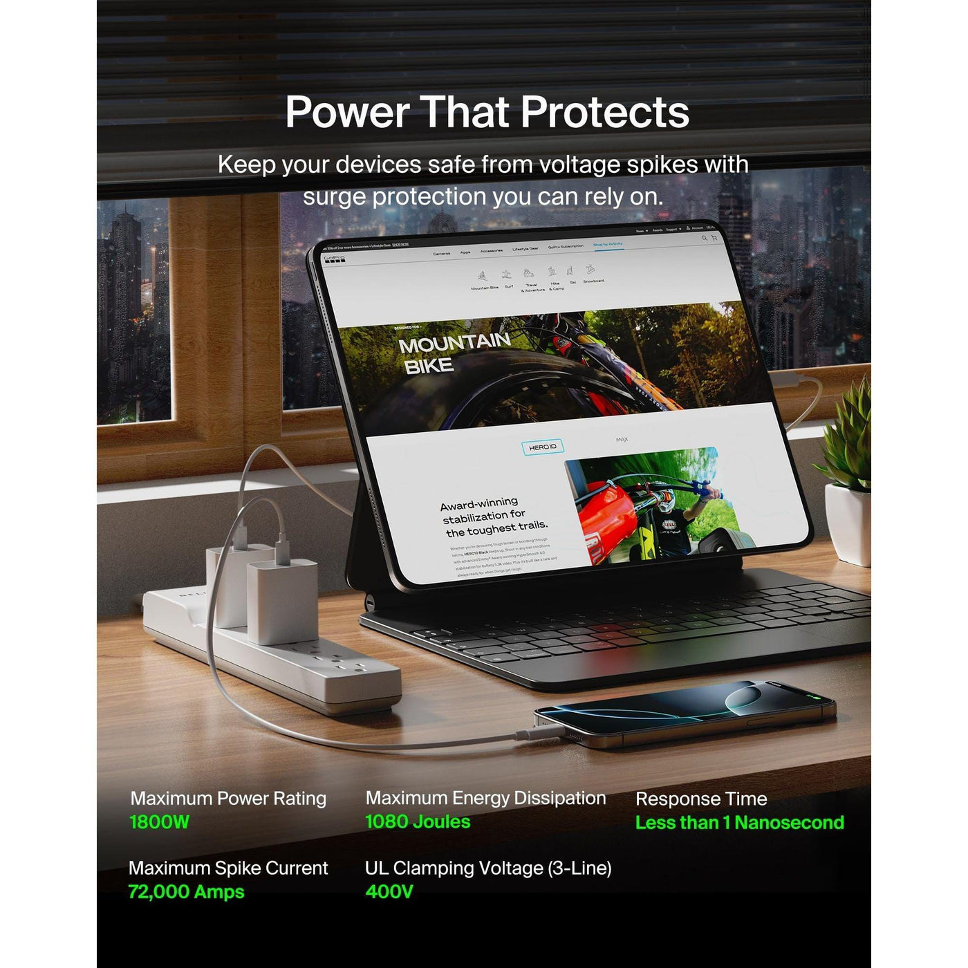 - SAFEGUARD YOUR DEVICES & APPLIANCES: This Belkin surge protector has a 1080-Joule energy rating, ensuring a reliable surge protector designed to protect personal workstations, expensive computers, monitors, hard drives, home theaters and other appliances.