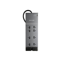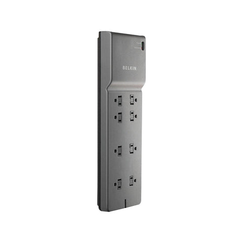 Details: This Belkin Home/Office Series Surge Protector (8-Outlet; Basic Protection) provides premium power protection for both home and professional workstations and all connected devices. It uses advanced design elements, top-quality construction and superior circuitry and components to provide the most complete protection from power surges, spikes and AC contamination available. This Home/Office Series model protects professional workstations, laser printers, telephones, home-theater systems and everyday household electronics. Its slim, sleek design blends seamlessly with today's modern electronics and appliances. This Home/Office Series model features a detachable cord-management clip that helps organize your cables.