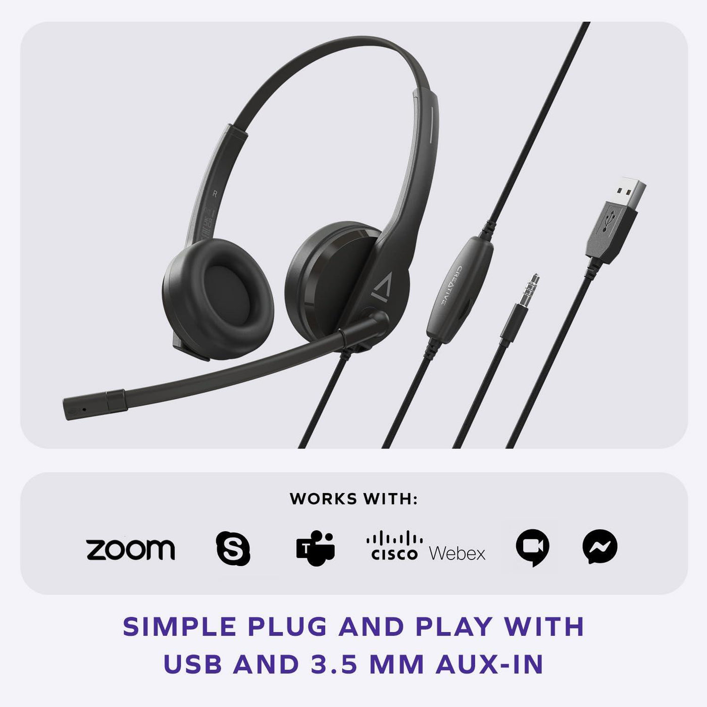 - SIMPLE USB & 3.5 MM PLUG-AND-PLAY – The headset is suitable for use with any PC or Mac computer with a USB or AUX-in port. It will work without requiring any additional drivers or software for setup