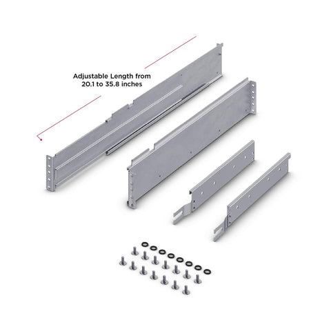 Details: The CyberPower CP2RAIL02 4-post rackmount rail kit provides a mounting solution for select 2U and 3U UPS systems weighing up to 500 pounds. The two adjustable rails (right and left) can be expanded from 20.1" to 35.8" for various sizing requirements and installed by a single person. A Five-Year Limited Warranty covers defects in materials and workmanship in the product under normal use and conditions.