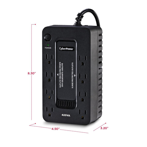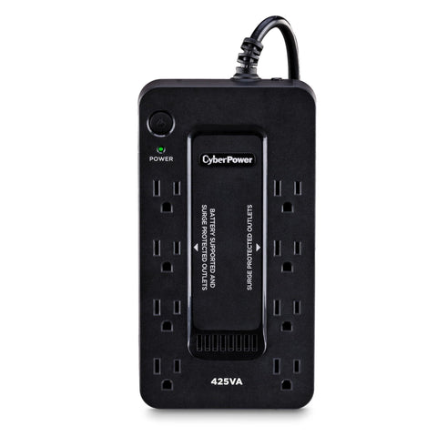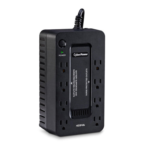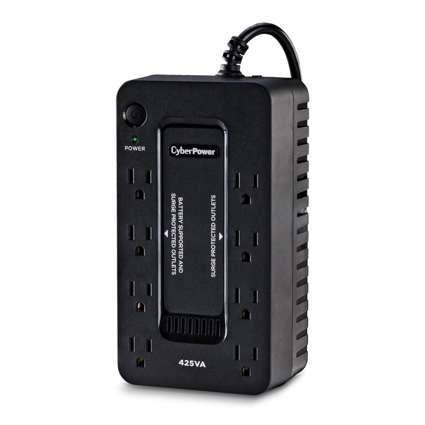 Details: The CyberPower ST425 Uninterruptible power supply (UPS) system provides battery backup and surge protection for lightning-induced surges and other power events that can damage electronic equipment. This unit delivers enough battery backup to power connected electronics through utility power failure and enough runtime to perform a graceful shutdown to protect against the loss of data and damage to valuable electronics during longer outages. Including a sleek design, this UPS is perfect for all your home office and entertainment needs, including computers, gaming consoles, and Broadband routers. With a $75,000 lifetime connected equipment guarantee and a three-year warranty, you can trust CyberPower commitment to the quality of this battery backup with surge protection.