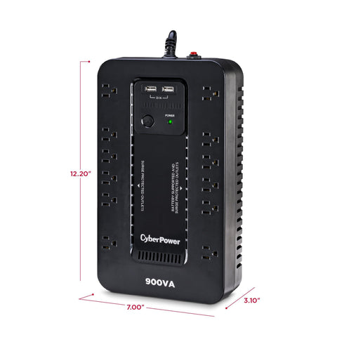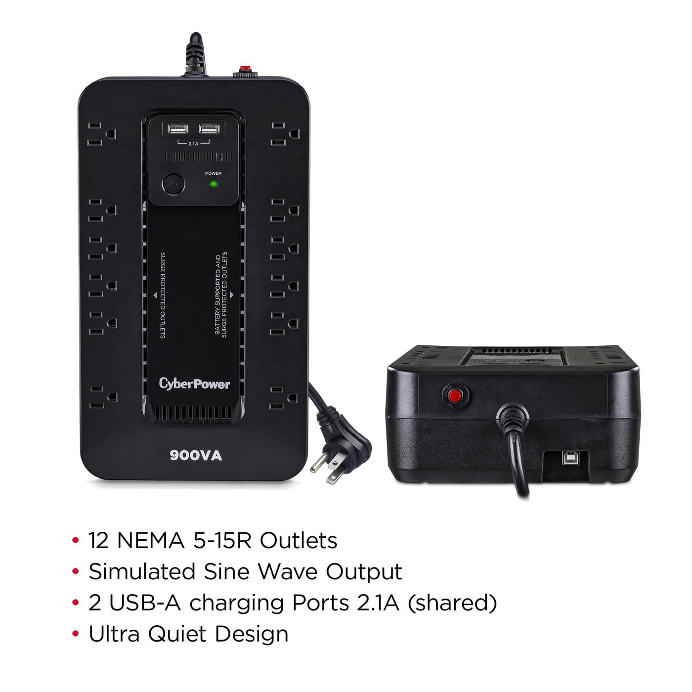 CyberPower ST900U Standby UPS System, 900VA/500W, 12 Outlets, 2 USB Charging Ports, Compact, Black