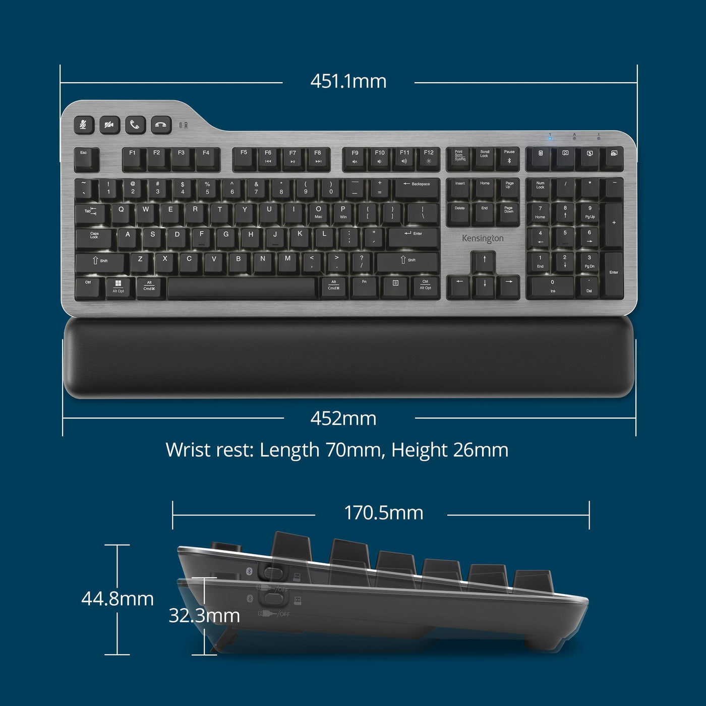 - Customizable keys allow programming of keys, creating macros, adjusting key mappings, managing profiles, and more with the optional Kensington Konnect software (download from Kensington’s site, for Windows or Mac); includes four built-in meeting control keys