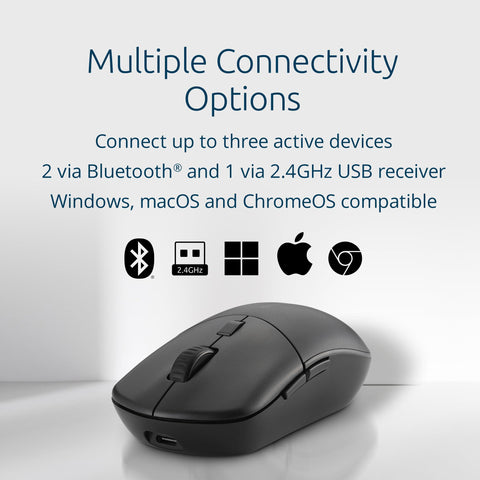 - Multiple Connectivity Options - Connect up to three active devices—two via Bluetooth Low Energy (LE) and one using the included 2.4GHz USB receiver. Includes built-in dongle storage. Windows, macOS and ChromeOS compatible.