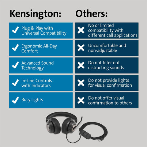 Kensington Noise Cancelling H2000 USB-C Over-Ear Headset (K83451WW)