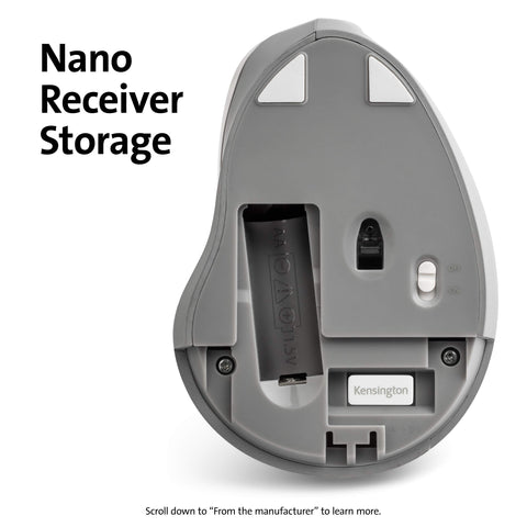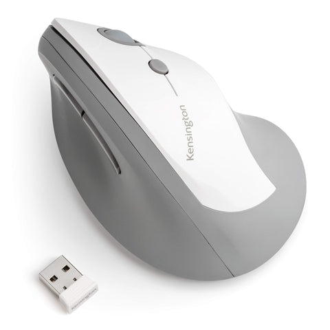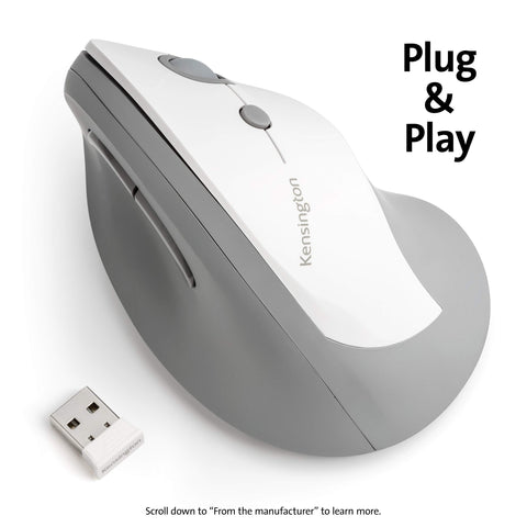 Details: Shake hands with your mouse. The Pro fit Ergo vertical wireless mouse, with its natural handshake position, improves wrist and forearm posture for better comfort and muscle support. Features include a contoured, natural (46. 7 degree) slope that neutrally positions The wrist; an extended lip to support the little finger; six buttons (left, right, forward, back, scroll wheel, and DPI adjustment); and a plug-and-play Nano receiver that delivers a wireless range up to 20 meters (65. 61 Feet). Available in black or gray.