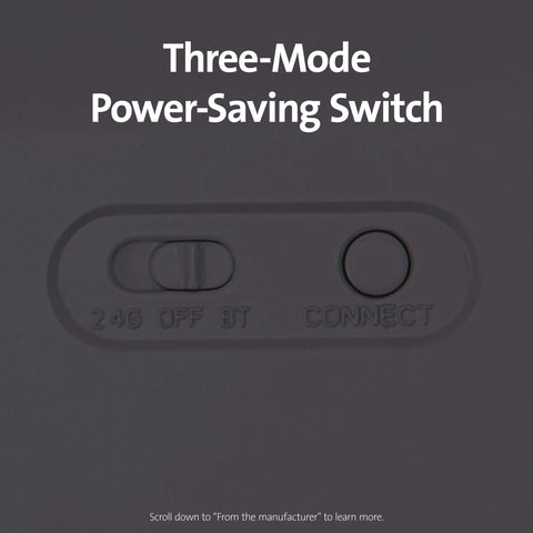 - Three-mode power-saving switch allows you to toggle between 2 4GHz Bluetooth and off for best battery life