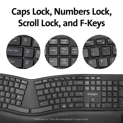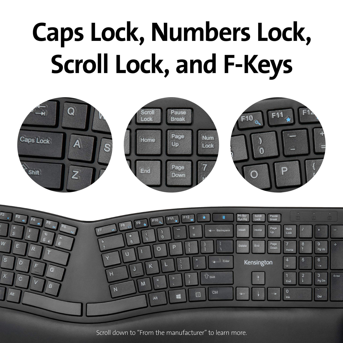 Details: With its split and sloped keyboard with adjustable reverse tilt and built-in wrist rest the ergonomist-approved Pro fit Ergo wireless keyboard positions your hands for improved comfort Features include dual wireless (2 4 GHz and Bluetooth 4 0 LE) with 128-bit AES encryption security quiet typing spill-proof keys f-keys for shortcuts caps lock numbers lock and scroll lock A Three-mode power-saving switch and a replaceable receiver* * in the event the receiver is lost or damaged simply purchase a new one pair it with your mouse and you're all set