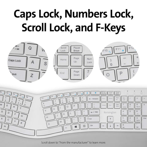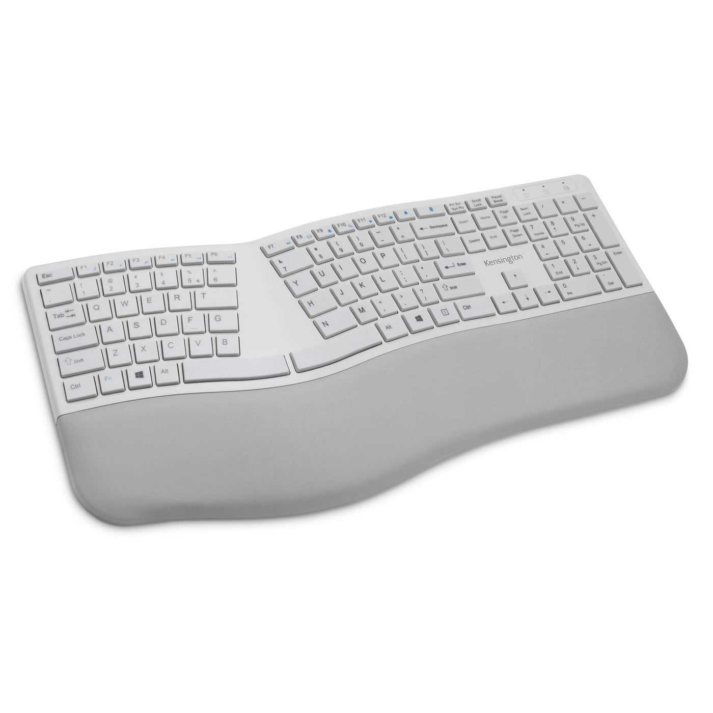 Details: With its split and sloped keyboard with adjustable reverse tilt and built-in wrist rest, the ergonomist-approved Pro fit Ergo wireless keyboard positions your hands for improved comfort. Features include dual wireless (2. 4 GHz and Bluetooth 4. 0 LE) with 128-bit AES encryption security; quiet typing; spill-proof keys; f-keys for shortcuts; caps lock, numbers lock, and scroll lock; A Three-mode power-saving switch; and a replaceable receiver in the event the receiver is lost or damaged, simply purchase a new one, pair it with your mouse, and you're all set.