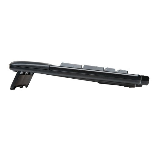 Details: The Kensington Pro Fit Wired Comfort Keyboard can be user configured in nine different positive, neutral and negative positions for totally customized fit. And the fully padded wrist wrest offers support and comfort for natural typing. The dedicated quick keys provide access to the internet and multimedia. And the spill-proof keyboard resists coffee, water, soda and other liquids. It offers reliable plug-and-play operation with a wired USB or PS2 connection.