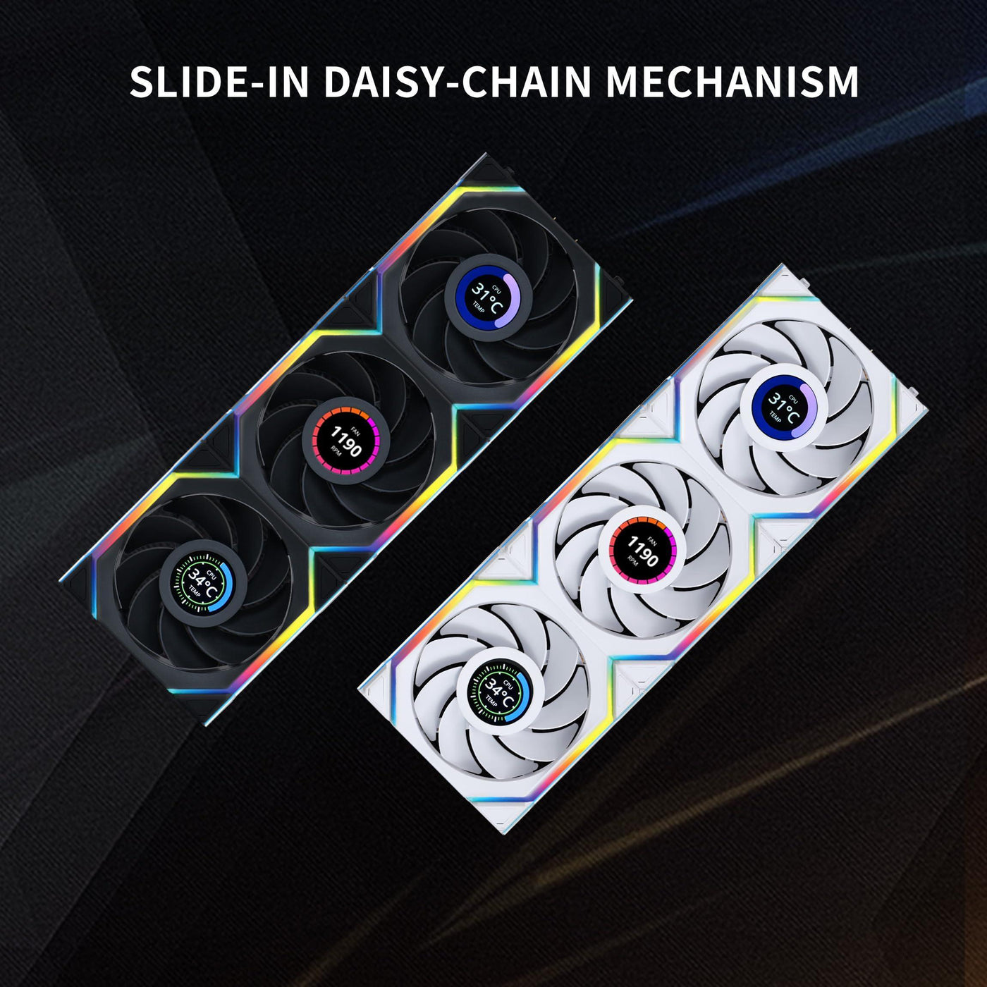 - RGB Effects: Customize the 40 LEDs with various lighting effects, enhanced by the wireless fan to create stunning illumination. The UNI FAN SL WIRELESS LCD and SL WIRELESS can work together in one daisy chain group, enjoy greater flexibility and streamlined performance!