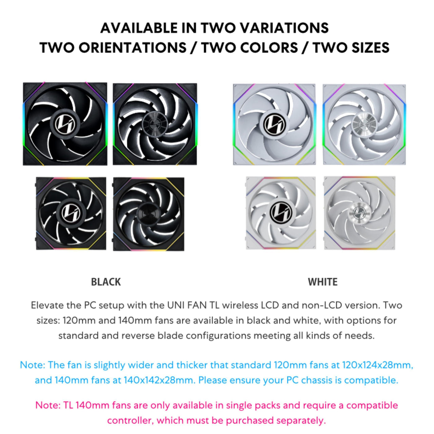 - 2.4 GHz Wireless Control: Experience the freedom of true wireless control with UNI FAN TL LED WIRELESS and TL LCD WIRELESS. Featuring advanced 2.4 GHz wireless technology, these fans eliminate cable clutter while seamlessly managing fan speed, RGB lighting, and even an LCD display.