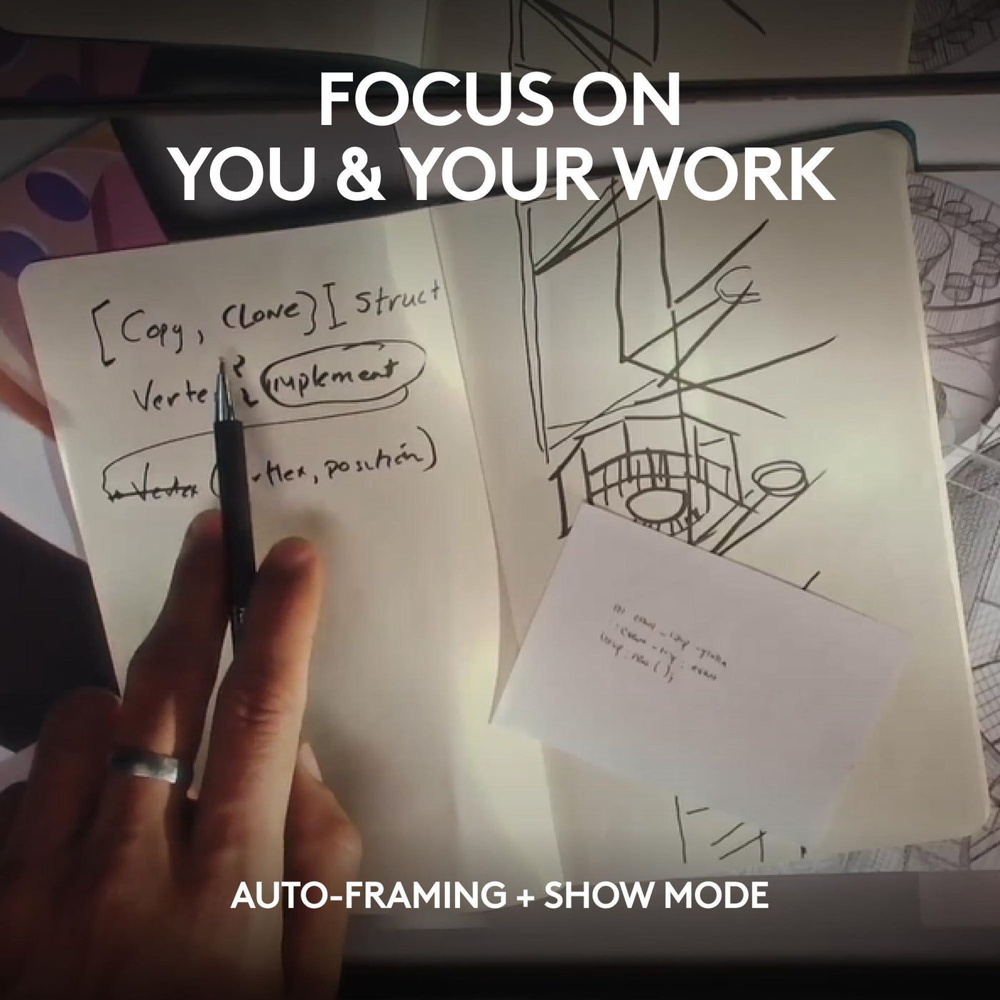 - Intelligent Video Experience: Present items on your desk easily with Show Mode (4); get a clear, responsive image with autofocus; stay centered on screen with auto-framing (4) (5)