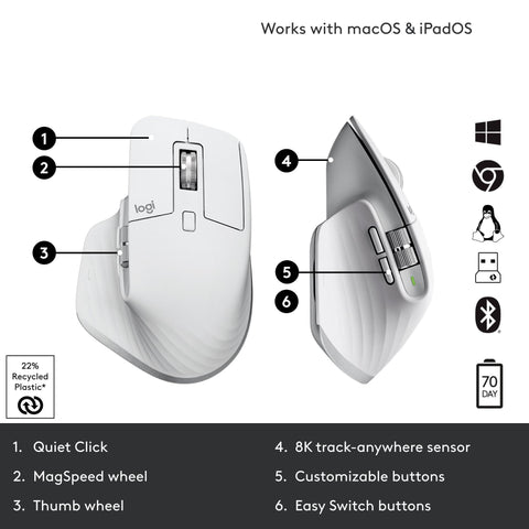 Logitech MX Master 3S Wireless Mouse Standard Edition with Logi Bolt USB Receiver, Ultra-fast Scrolling, Ergo, 8K DPI, Track on Glass, Quiet Clicks, USB-C, Bluetooth, Windows, Linux, Chrome- Pale Grey Sale