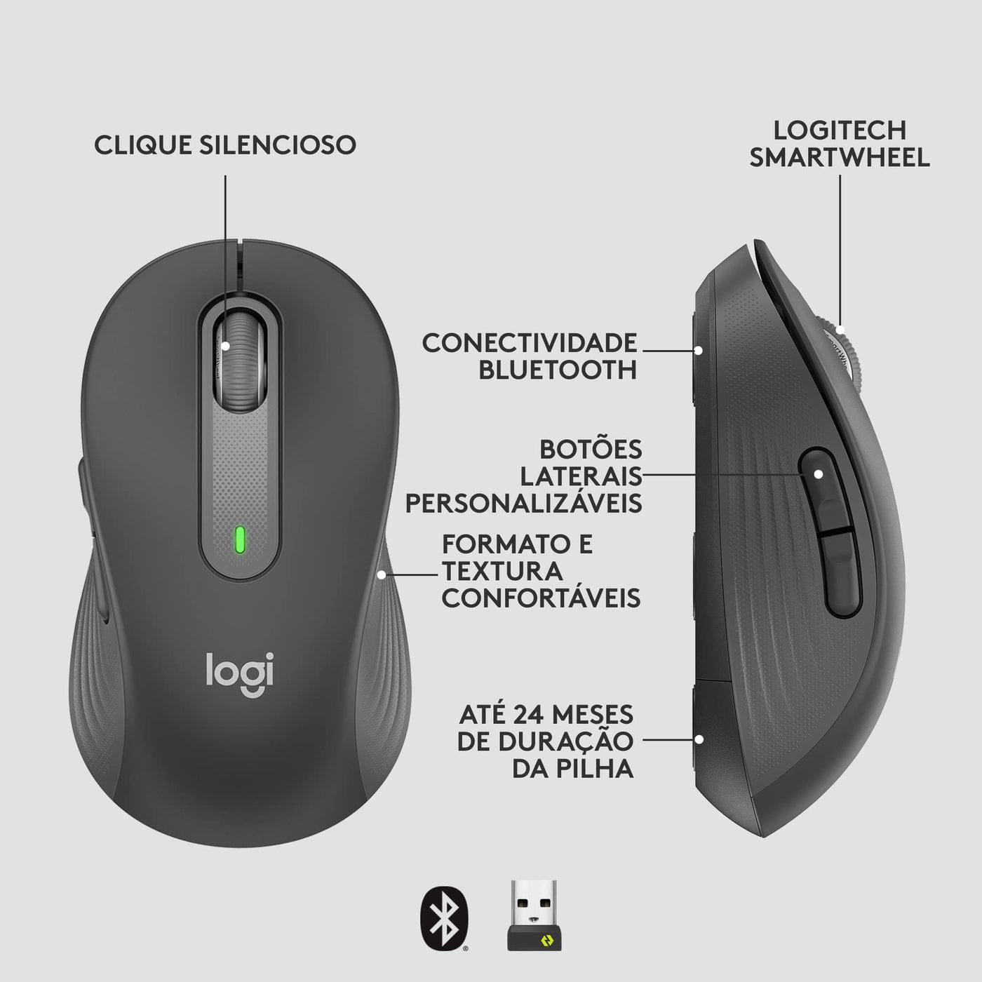 Details: Upgrade to smarter scrolling and more productivity with a mouse comfort-fit for your hand size and preference. You'll work faster than ever before thanks to SmartWheel scrolling, silent clicks, and a contoured comfort design. Smartwheel Scrolling provides line-by-line precision for documents - and super fast scrolling for long web pages. Choose the right design for you - whether you have smaller or larger hands - and work long hours in comfort thanks to the computer and laptop mouse's contoured shape and soft-to-the-touch thumb area. Connect instantly via Bluetooth or Logi Bolt USB receiver. Customize the side buttons for your favorite shortcuts with Logitech Options+. Work in peace and quiet thanks to 90 percent less click noise and Logitech SilentTouch technology. Plus, work for up to 2 years on the included AA battery so you never have to worry about recharging your mouse.