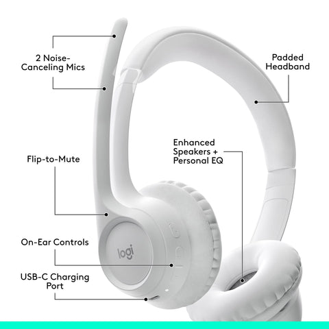 Details: The Logitech Zone 300 is the essential wireless Bluetooth headset with great audio quality for work and downtime. Move freely about your home or office and stay reliably connected with multipoint Bluetooth, up to 30 meters away. Meet with anyone on your preferred calling platform with this Wireless Headset With Microphone. Dual noise-canceling mics on the extended mic boom suppress background sound and allow others to hear you clearly. Enhanced speakers mean you can also hear just as well. With Zone 300, you can seamlessly switch between your computer and your smartphone. Get up to 20 hours of listening time and 16 hours of talk time on a full charge. When the battery is low, a 5-minute quick charge gives you another hour of talk time. With its plastic parts made with a minimum of 55% recycled plastic*, the Logitech Zone 300 is a choice you’ll feel good about. *Excluding printed wiring assembly (PWA), cables, and packaging.
