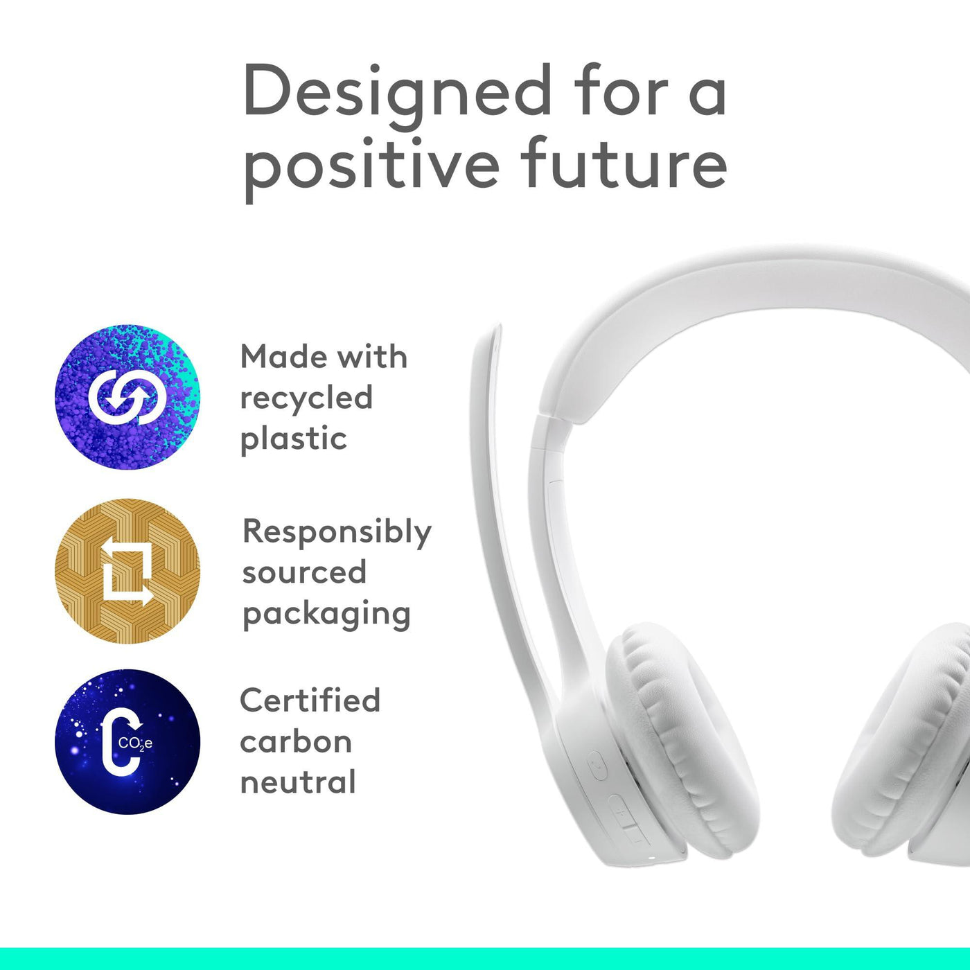 - The Logitech Zone 300 Bluetooth Wireless Headset is certified carbon neutral and includes certified post-consumer recycled plastic (Graphite: 55%, Off-white and Rose: 42%)(4)