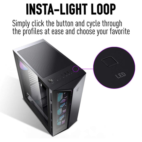 - INSTA-LIGHT LOOP - Insta-Light Loop button allows users to quickly cycle through ARGB lighting effects and color profiles.