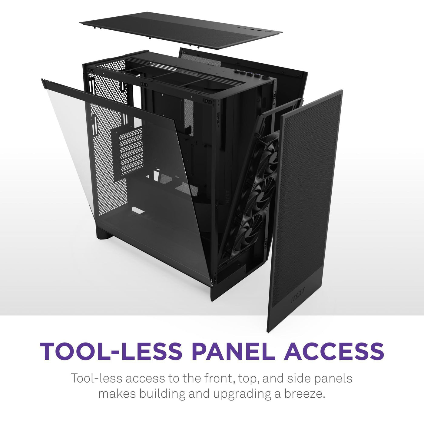 Details: NZXT H7 Flow | CM-H72FB-01 | Mid-Tower ATX Airflow Case | Supports 3 x 120mm Fans in Bottom for Direct GPU Cooling | Includes 3 x 120mm Front Fans | 420mm Front Radiator Support | Cable Management | Black