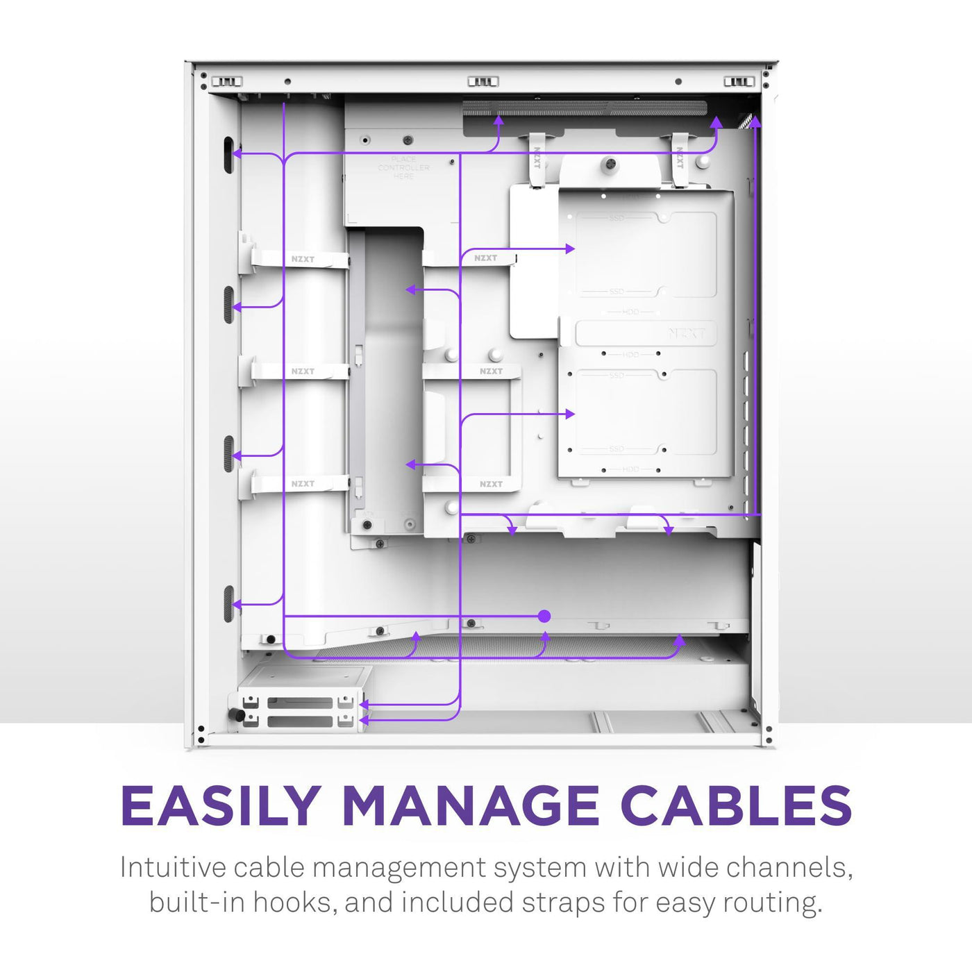 Details: NZXT H7 Flow RGB | CM-H72FW-R1 | Mid-Tower ATX Airflow Case with RGB Fans | Supports Bottom Fans for Direct GPU Cooling | Includes 360mm RGB Single-Frame Fan Unit | Cable Management | White