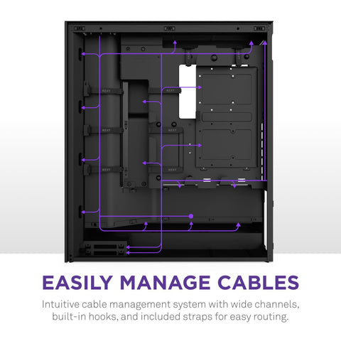 - EASILY MANAGE CABLES — Intuitive cable management system with wide channels, built-in hooks, and included straps for easy routing.