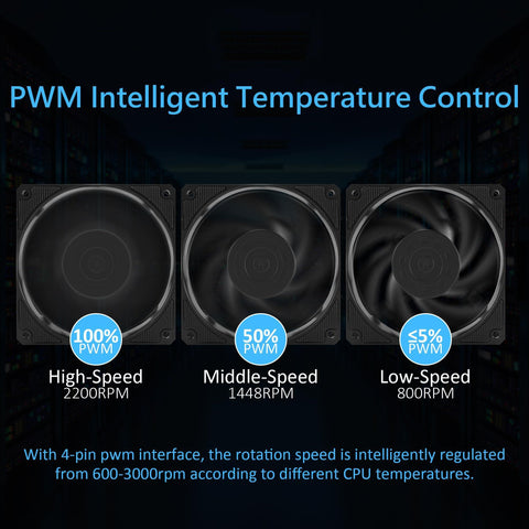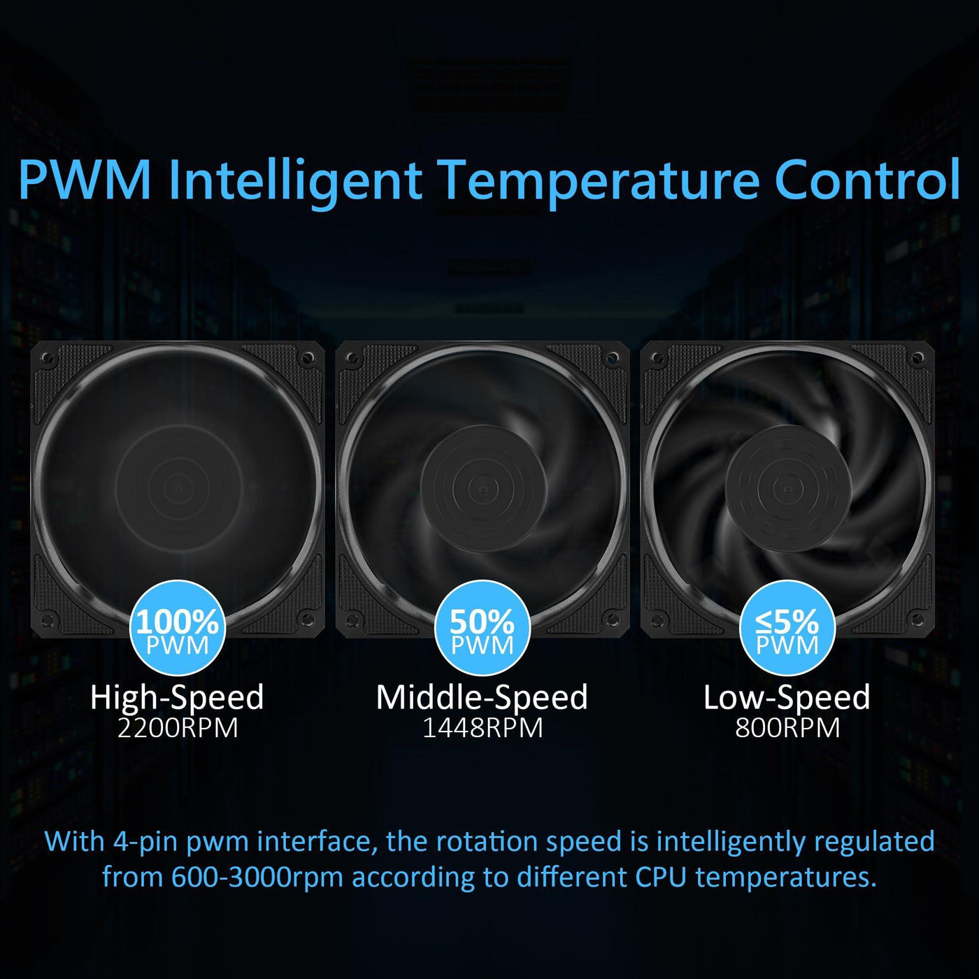 - 4-Pin PWM Interface: With 4pin PWM ,motherboard will adjust the fan speed from 600RPM-3000RPM according to inner working temperature automatically.